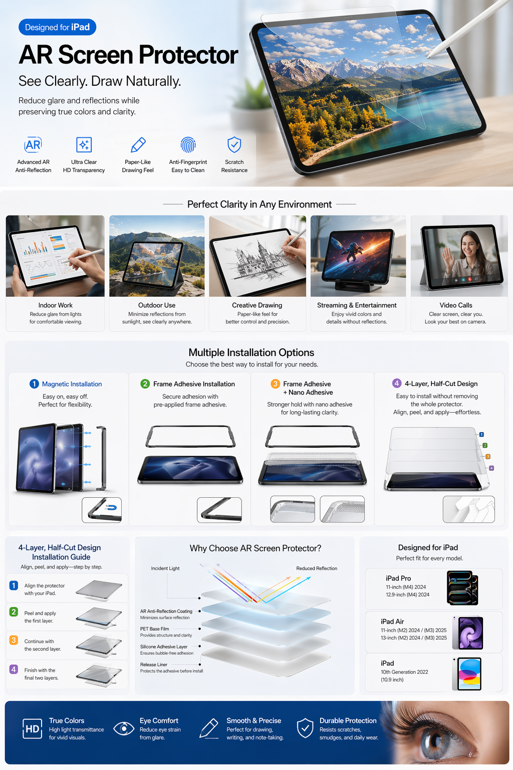 LUSA DESIGN AR HD Screen Protector for iPad 11th(A16/10th) Gen with Easy-Install Ultra-clear & High Definition